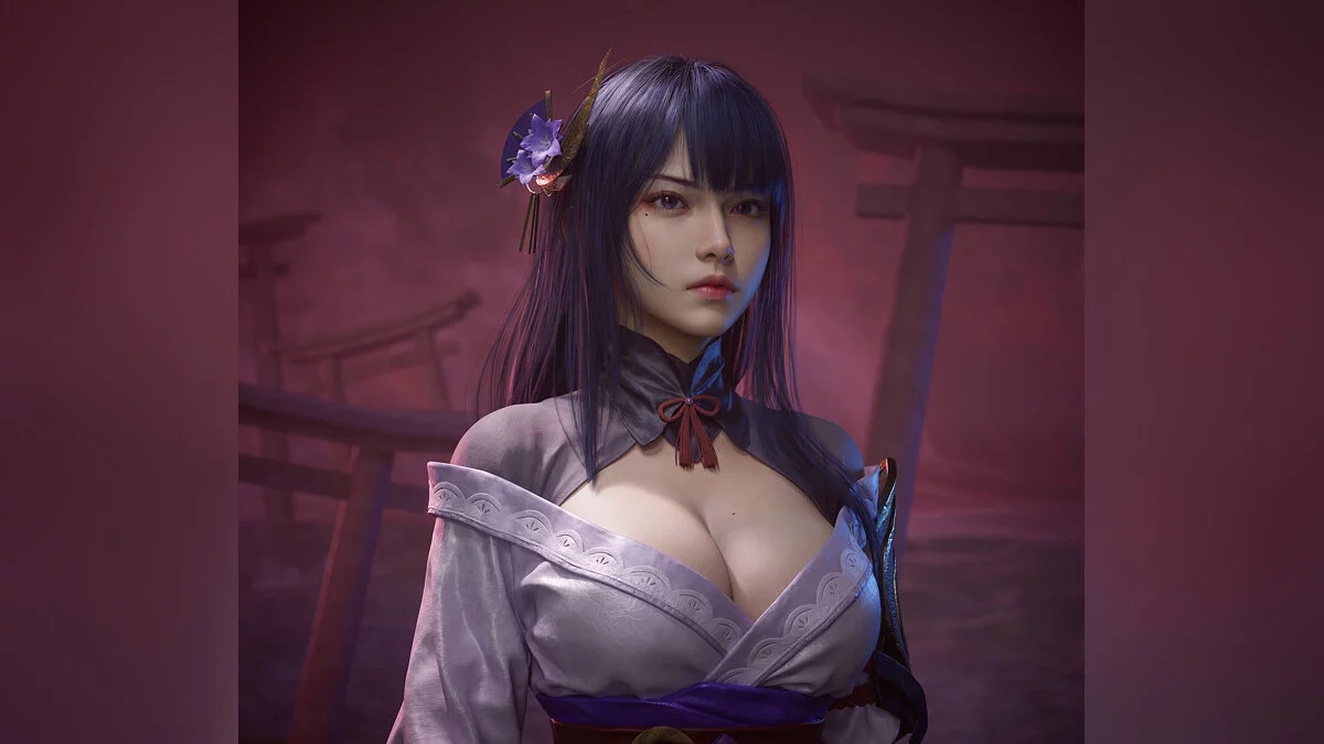 Художник показал Сегун Райдэн из Genshin Impact в виде реальной девушки с большой грудью