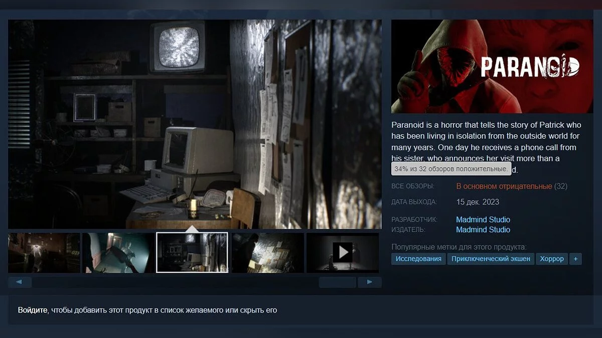 Madmind Studio, известная по Agony и Succubus, выпустила новый хоррор от первого лица под названием PARANOID. Первые отзывы в Steam — в основном отрицательные.