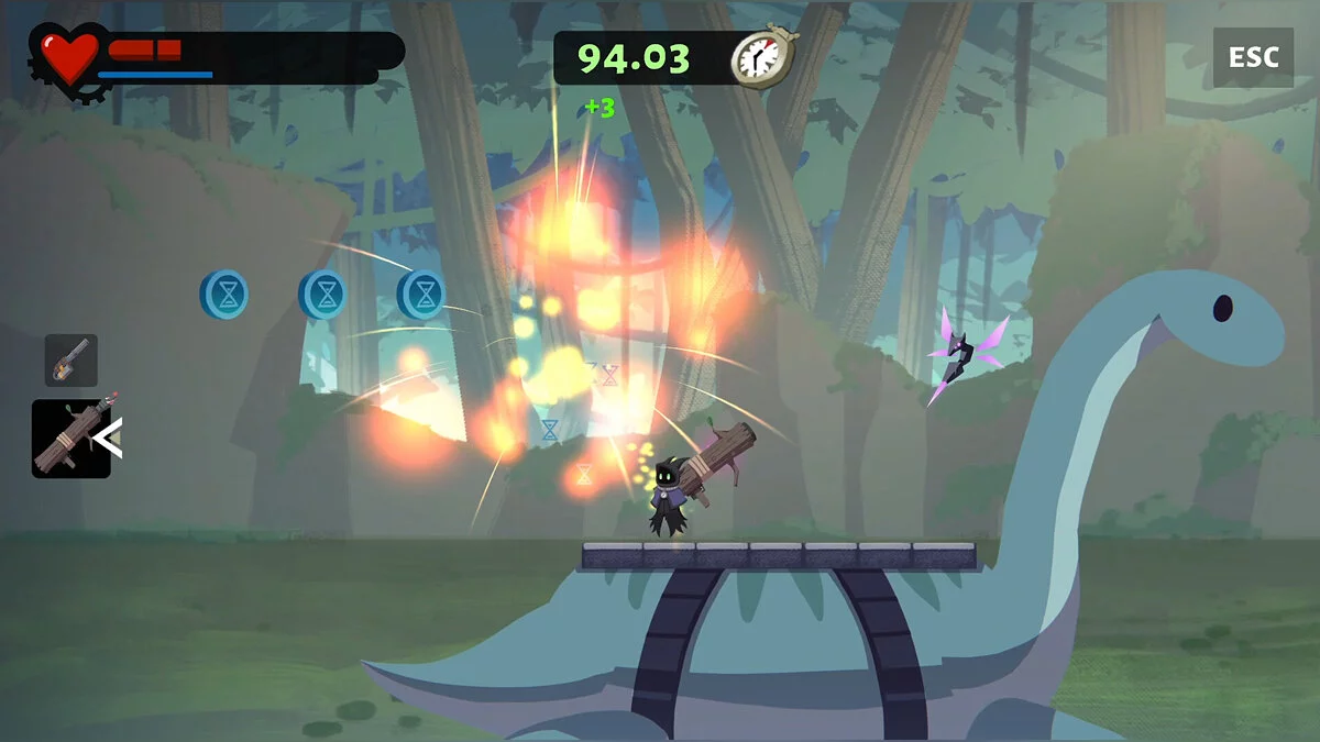 Zeitghast — двухмерный экшен-платформер про путешествие по технологически усовершенствованному доисторическому миру. Главным героем выступает дух времени, которому поручено остановите злого доктора Антага, чтобы защищать временную шкалу. Страница в Steam.