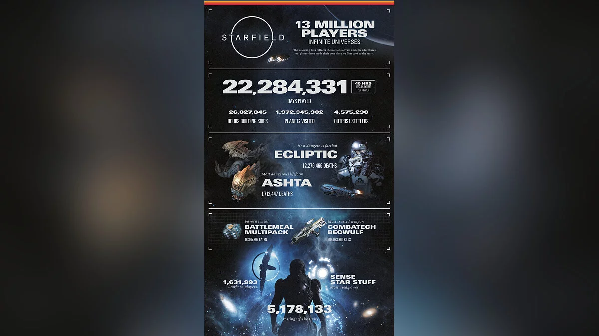 Компания Bethesda сообщила, что в Starfield сыграли 13 миллионов человек, а также поделилась некоторыми планами на пострелизную поддержку ролевой игры.