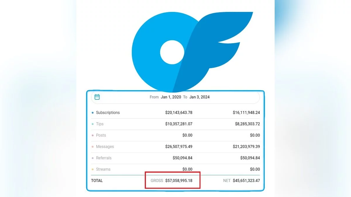 За последние четыре года модель заработала $57 млн. Из них $20 млн приходится на подписки, $10 млн на чаевые, а $26,5 на переписку.