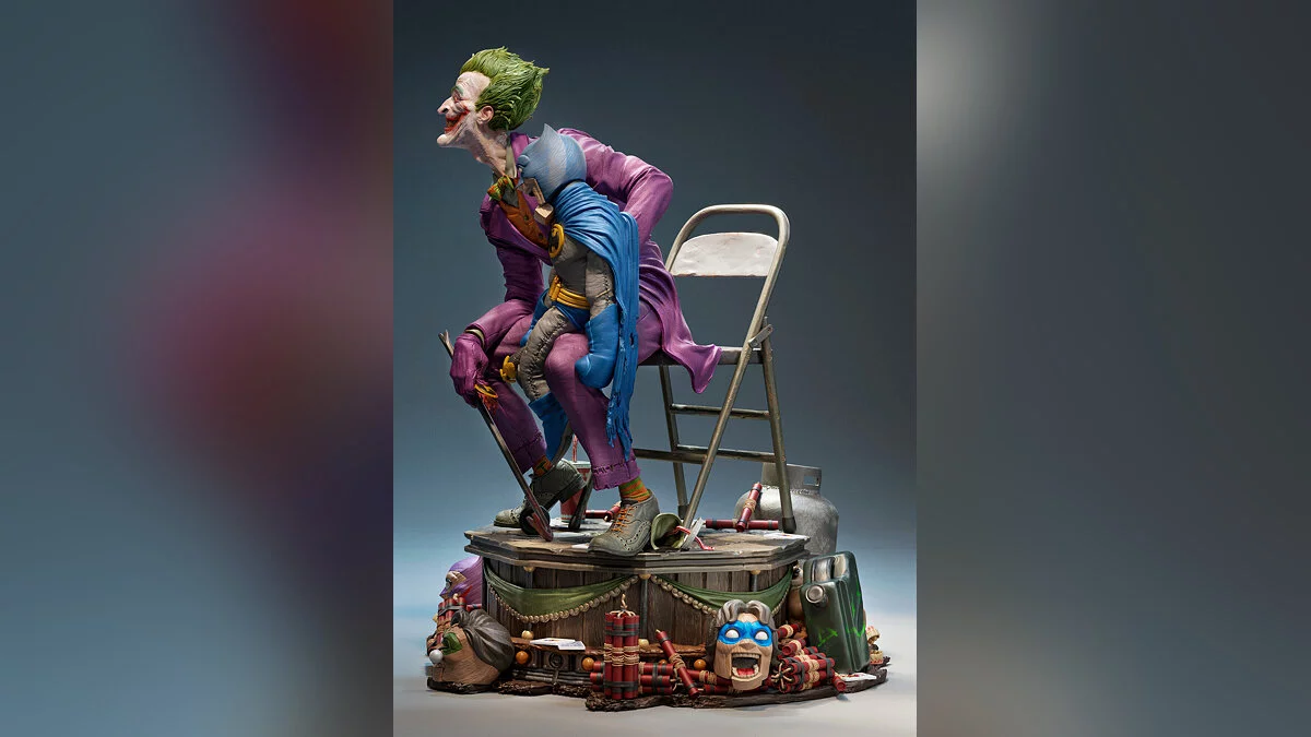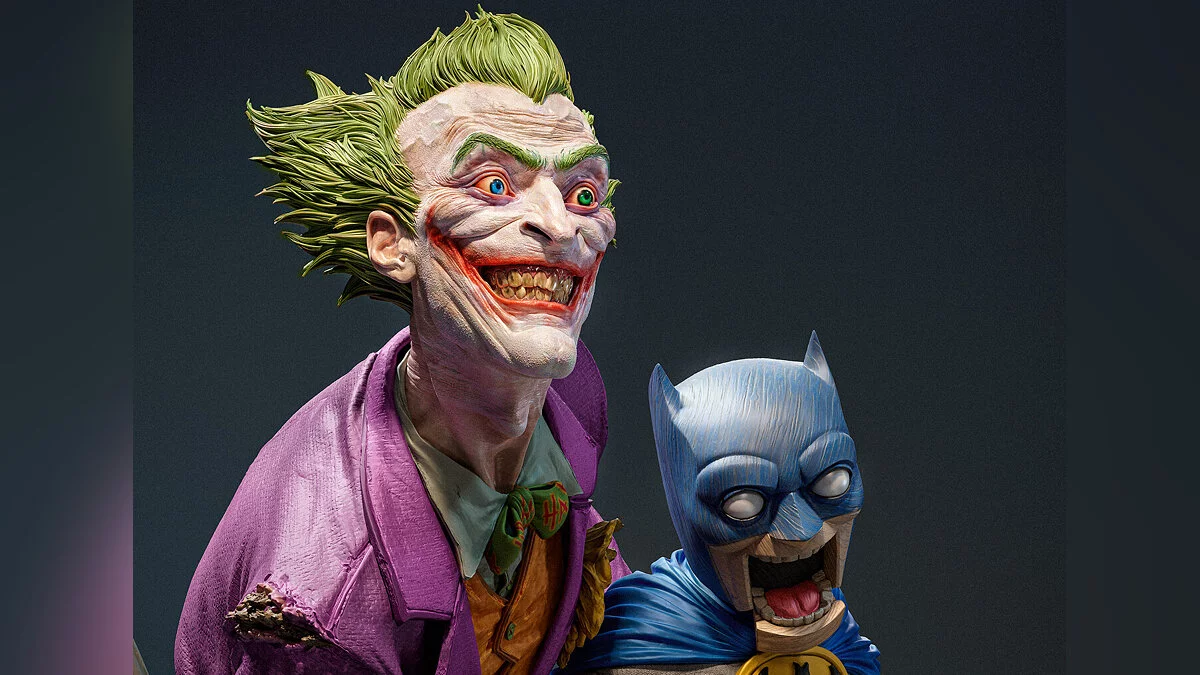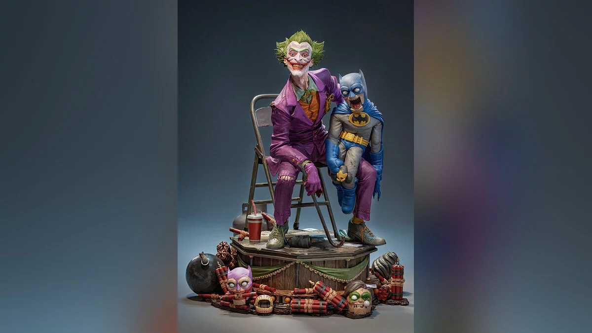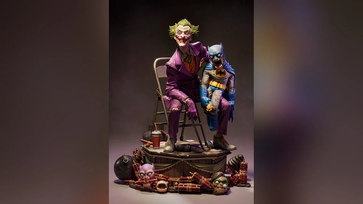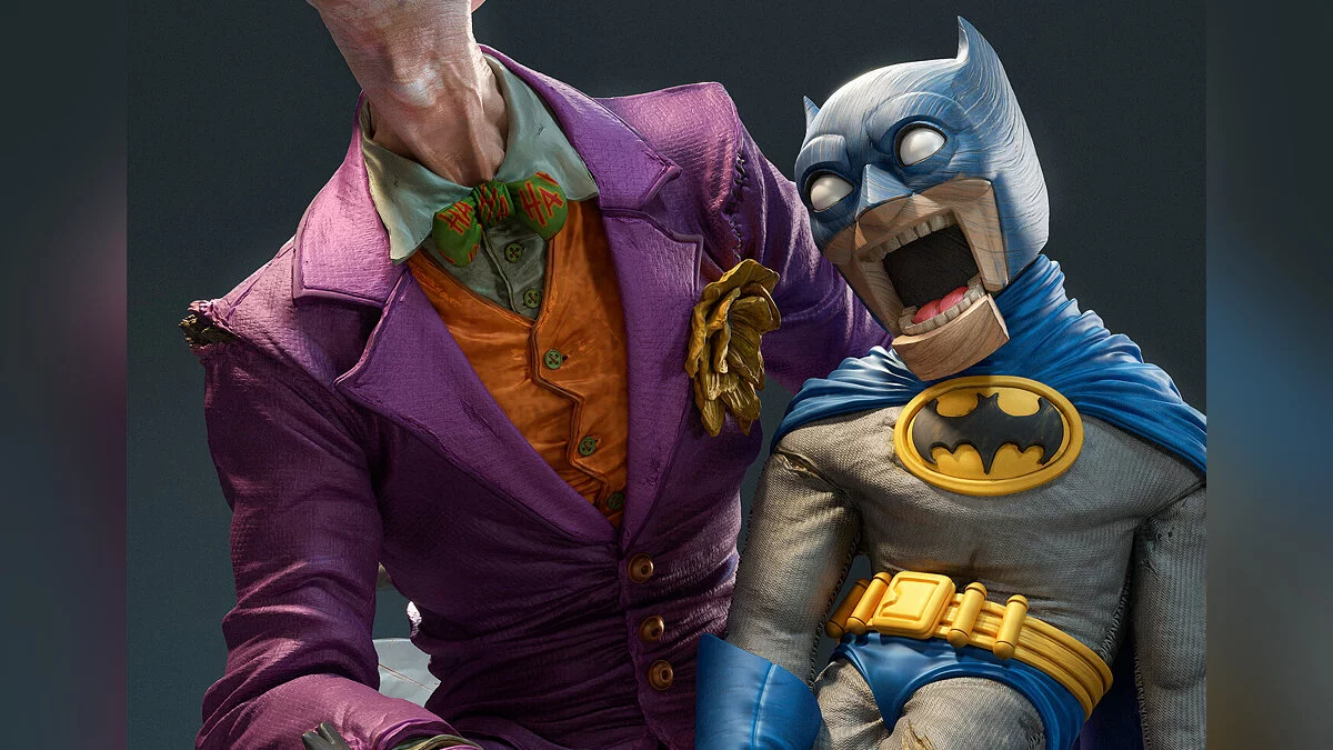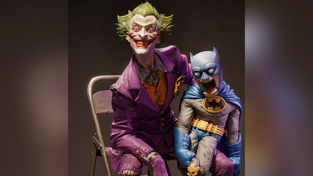 На арте показано, как Джокер держит в руках куклу в виде Бэтмена. Для создания 3D-модели автор использовал программы ZBrush, Blender и Photoshop.