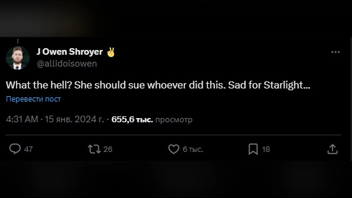 В X (Twitter) самый популярный пост, где обсуждается внешний вид Эрин Мориарти, набрал больше 50 тысяч лайков. Автор публикации заявил, что исполнительница роли Звездочки испортила лицо. Многие фанаты шоу с ним согласились.