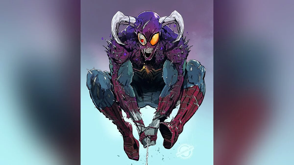 Цифровой художник с ником MJ.Hiblen опубликовал арт, на котором показал демоническую версию Человека-паука из вселенной Marvel. У персонажа появились большие рога, шипы на плечах и острые клыки.