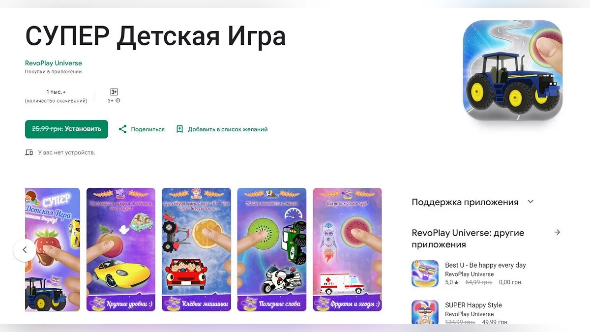 - SUPER Baby Game — расслабляющая игра для маленьких детей с красивыми иллюстрациями машинок (загрузить бесплатно);