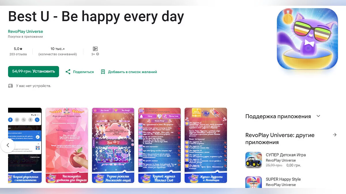 - Best U — Be happy every day — программа, которая ежедневно будет радовать позитивными словами и теплыми комплиментами (загрузить бесплатно).