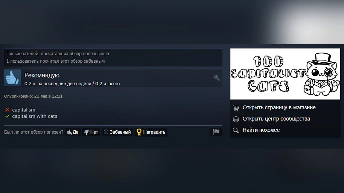 Скачать можно 100 Capitalist Cats здесь. При желании сторонники капитализма могут приобрести дополнительный уровень за 42 37 рублей. Также в Steam есть другие игры, посвященные азиатским и рождественским котикам.