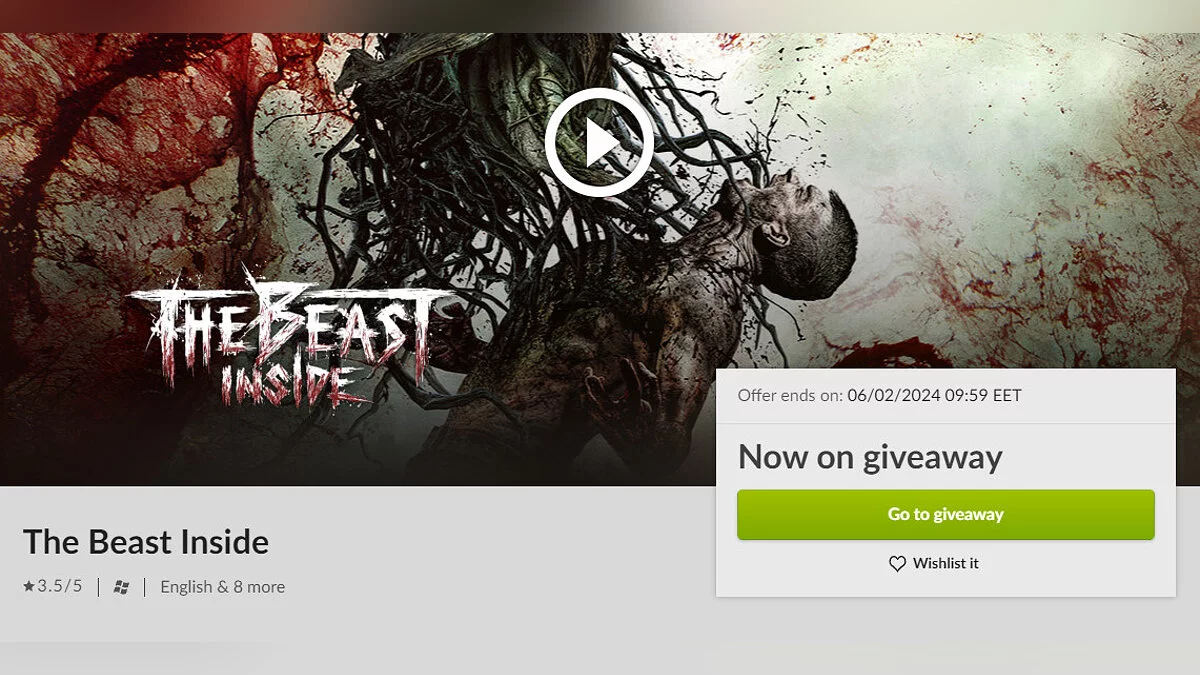 В сервисе GOG стартовала бесплатная раздача хоррора The Beast Inside, который в российском Steam стоит 880 рублей. Чтобы забрать игру, нужно авторизоваться на сайте GOG и перейти по этой ссылке, после чего она автоматически добавится в библиотеку. Акция продлится до 6 февраля.
