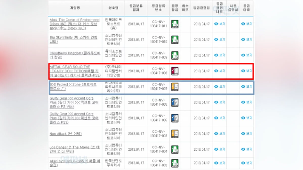 Корейское рейтинговое агенство указало на существование сборника Metal Gear Solid: The Legacy Collection, в состав которого, скорее всего, войдут все игры серии — от первой части 1998 года до Peace Walker.