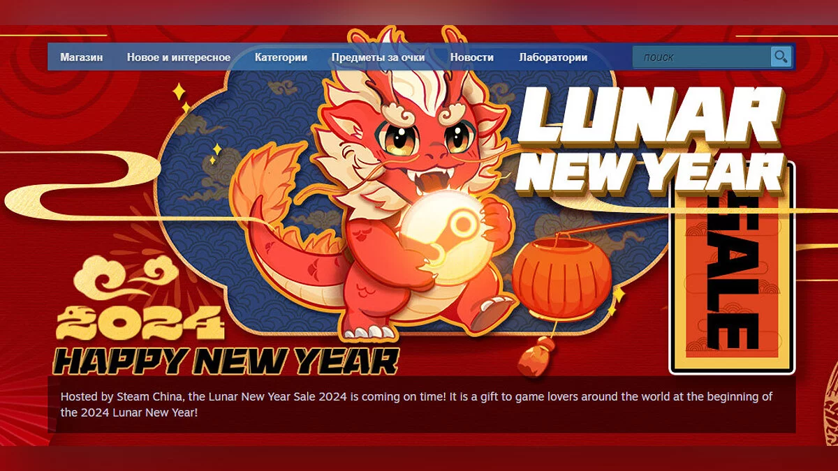 К началу Китайского Нового года в Steam запустили мини-распродажу «Лунный новый год» с массой приятных скидок и раздачей бесплатных предметов из магазина очков.