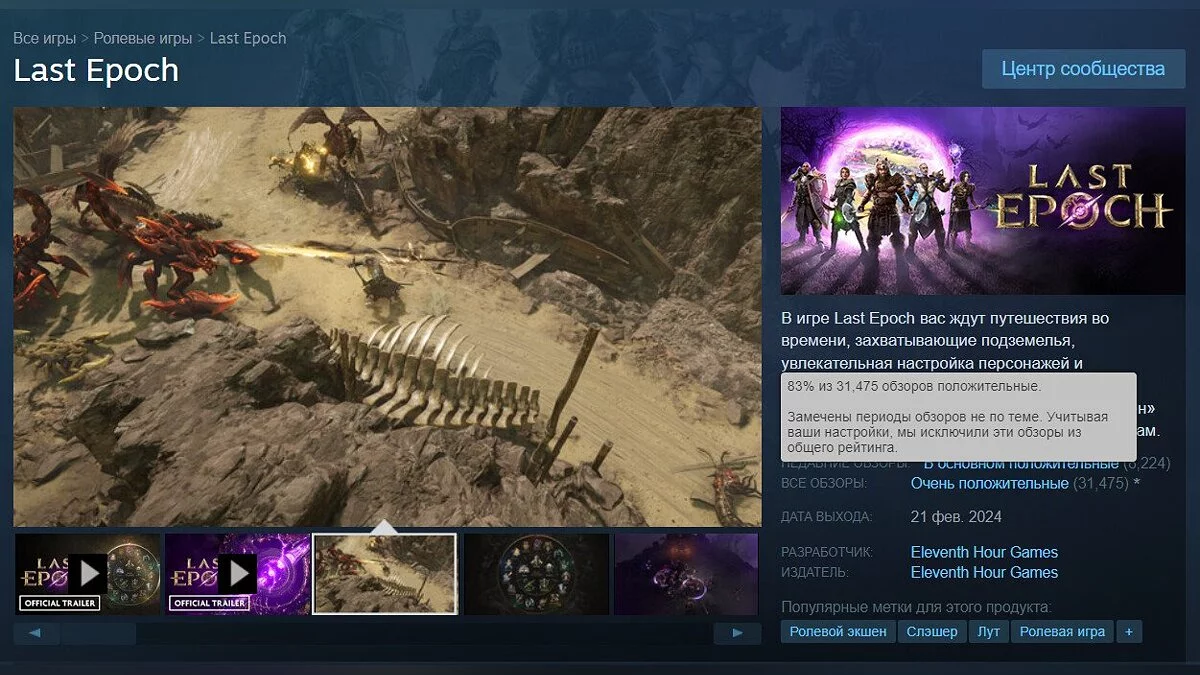 Купить Last Epoch в Steam можно за 1475 pуб.