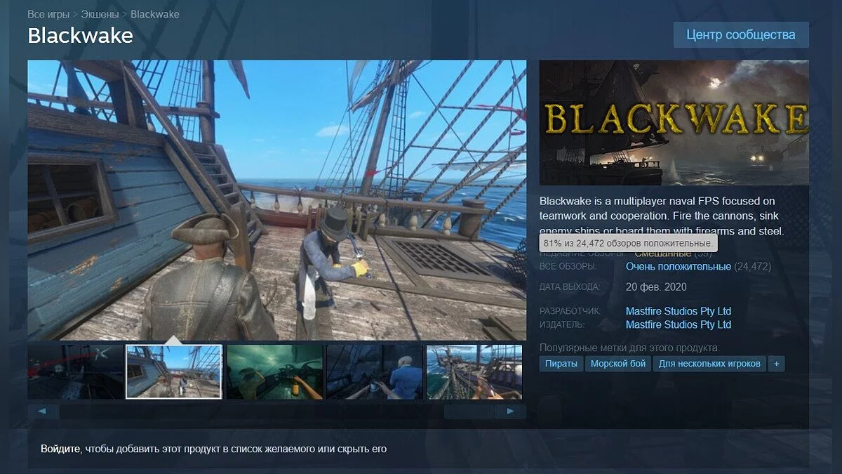 В Steam на полностью бесплатную модель распространения перешла популярная игра в пиратском сеттинге под названием Blackwake, которая вышла в 2020 году и за это время получила 24 тыс отзывов, 81% из которых являются положительными.