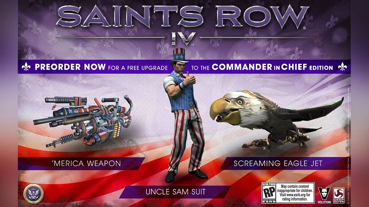 «Дядюшка Сэм хочет, чтобы вы... оформили предказаз на Saints Row 4 Commander in Chief Edition!». Компания Deep Silver анонсировала коллекционное издание четвёртой части Saints Row для настоящих патриотов.