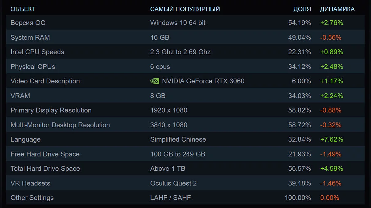 Компания Valve опубликовала список самого популярного «железа» в Steam в феврале 2024 года. Самой востребованной ОС снова оказалась Windows 10, а видеокартой — RTX 3060.