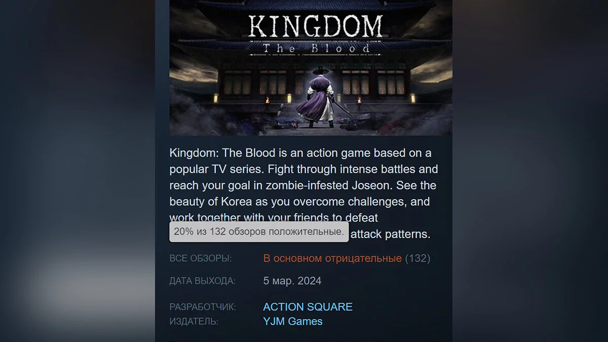 Kingdom: The Blood также появилась в Steam. Судя по отзывам, пользователям сервиса Valve не понравилась идея выпустить мобильную игру на ПК. Проект получил всего 20% рейтинга.