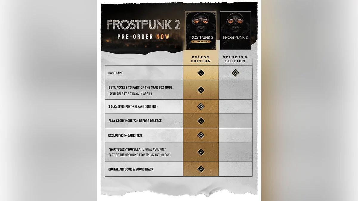 Действия Frostpunk 2 развернутся спустя 30 лет после событий, показанных в первой части, вышедшей в 2018 году. В сиквеле геймеры столкнутся с новой смертельной угрозой — человеческой натурой. Проект выйдет 25 июля для PC, PS5 и Xbox Series X/S. На релизе он попадёт в Game Pass.