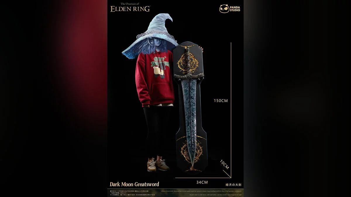 Двуручник темной луны считается одним из лучших видов оружия в игре. Реплика сделана из специальной прозрачной смолы, красиво переливающейся на свету. Высота двуручника составляет полтора метра.