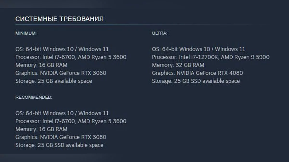 Похоже, Valve пересматривает подход к отображению системных требований в Steam. Как заметили журналисты PCGamesN, в сервисе появилась первая игра, у которой есть новая категория с требованиями «Ультра».