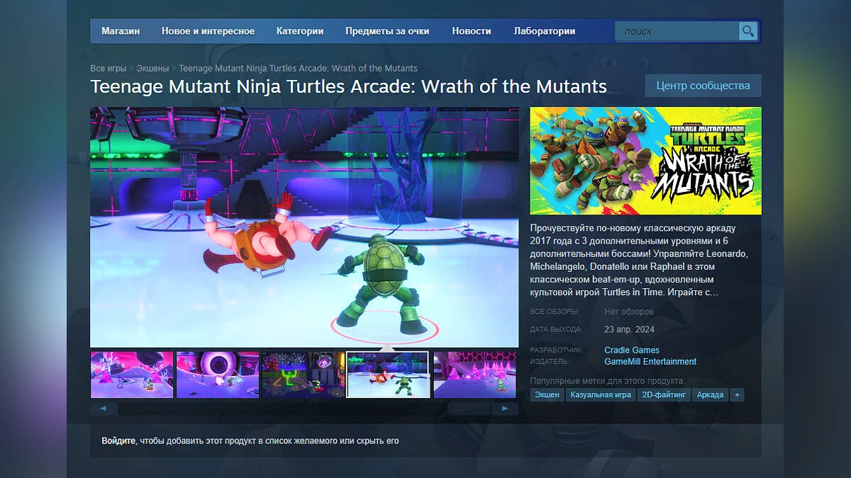 В сервисе Steam появилась страница обновлённой версии Teenage Mutant Ninja Turtles Arcade: Wrath of the Mutants — битемапа, выпущенного в 2017 году эксклюзивно для аркадных автоматов.