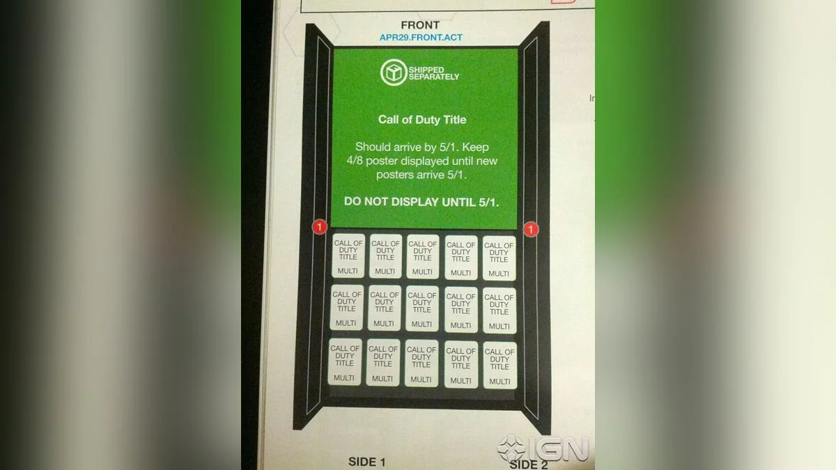 В сети появилась фотография запакованной коробки с материалами, присланными в GameStop для рекламы новой Call of Duty. На коробке написано, что её запрещено открывать до 1 мая (в Северной Америке число месяца пишут перед числом дня).