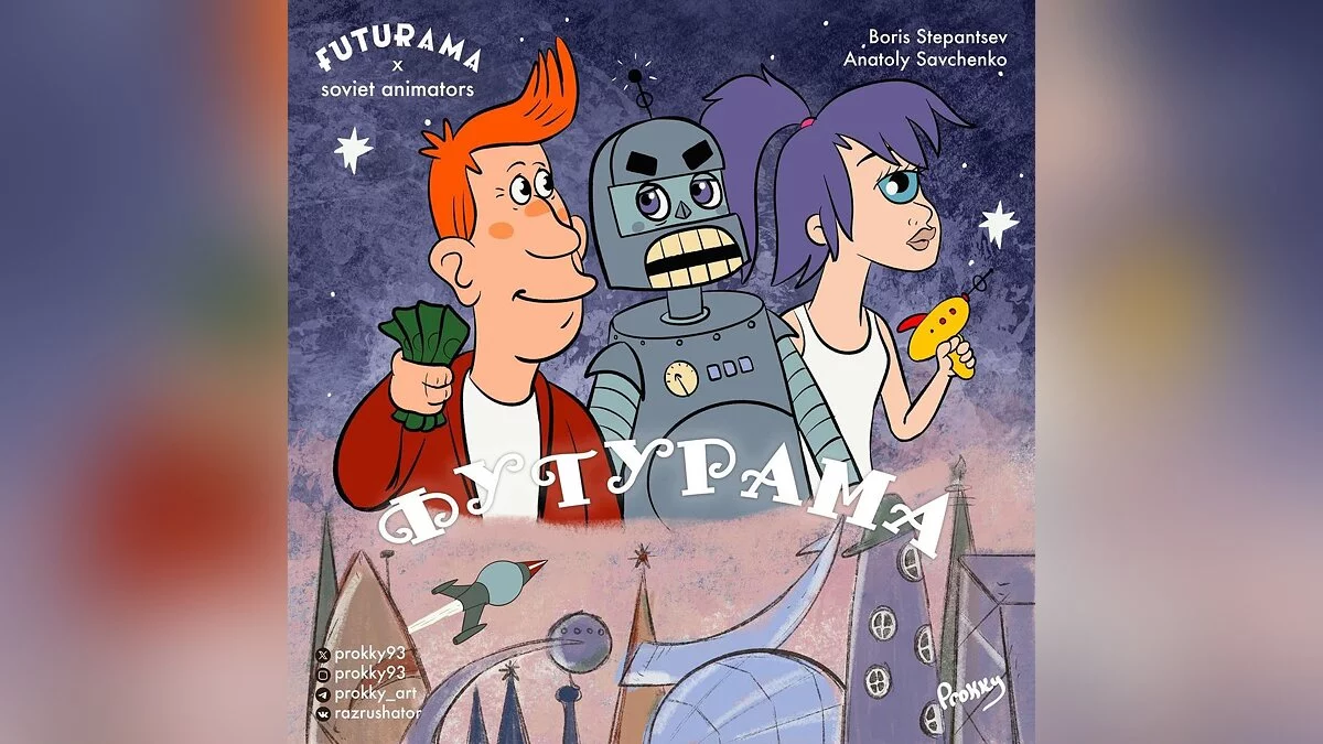 В этом месяце (28 марта) «Футураме» исполнилось ровно 25 лет с момента начала трансляции. По этому случаю художник «Союзмультфильма» Прокопий Уляшов показал, как бы выглядел культовый мультсериал, если бы вышел в СССР, а над его созданием работали знаменитые советские мультипликаторы.