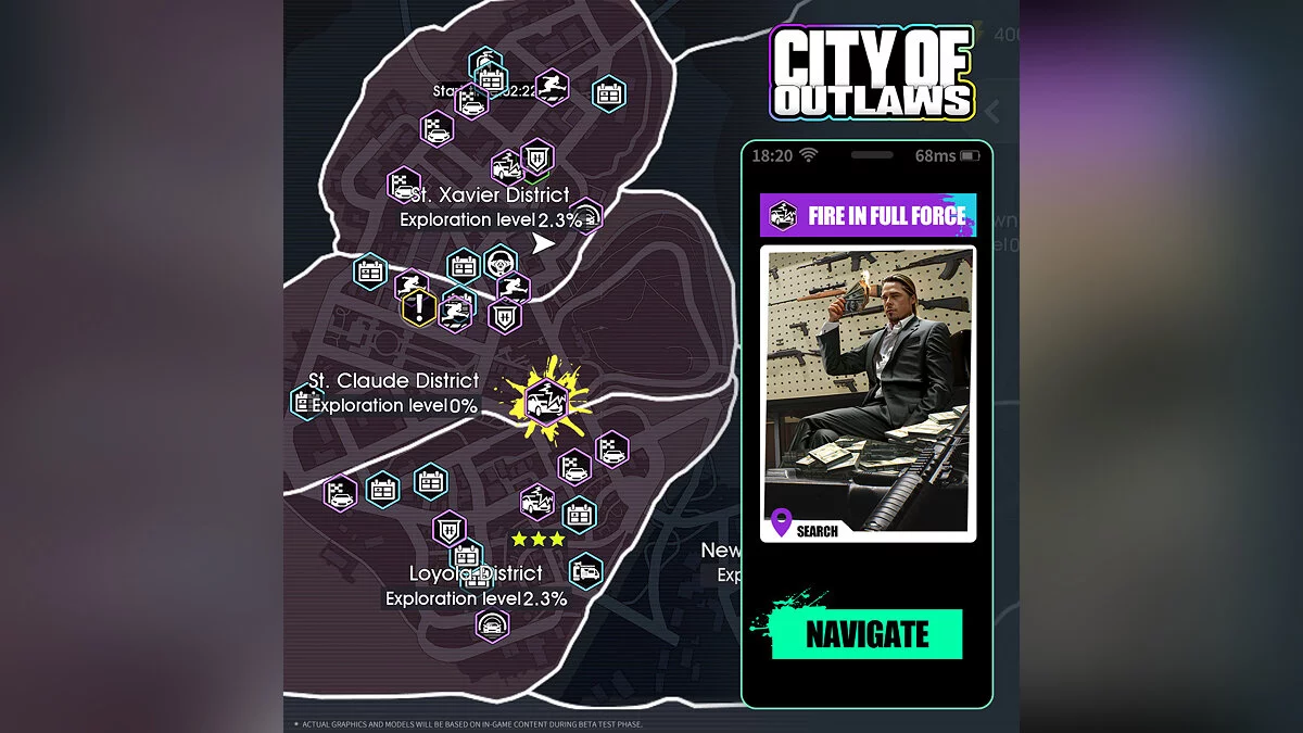 City of Outlaws имеет несколько заметных отличий от Grand Theft Auto. Во-первых, она условно-бесплатная. Во-вторых, в игре присутствует система прокачки главного героя, благодаря которой геймеры могут увеличить количество HP, урон, скорость бега и плавания, шанс критического попадания и не только. В-третьих, у оружия есть уровень и степень редкости (как в лутер-шутере).