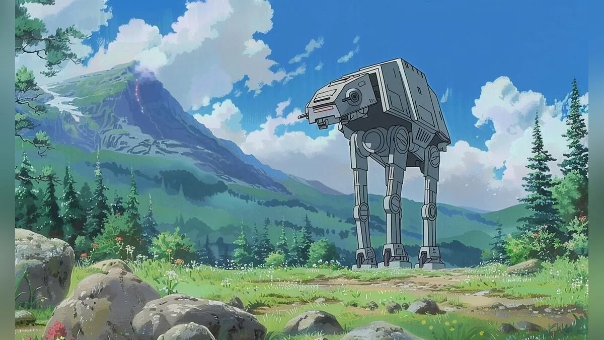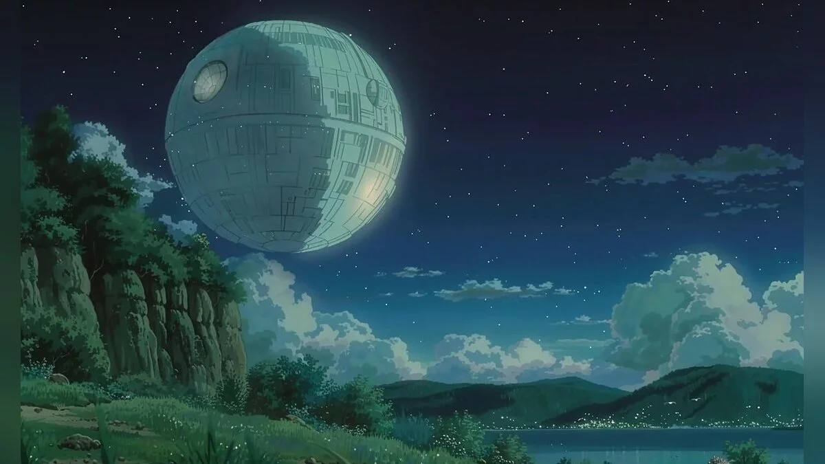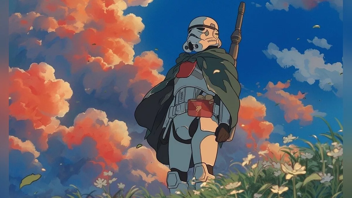 В сети показали, какой была бы культовая сага «Звездные войны», если бы японская студия Ghibli во главе с режиссером и сценаристом Хаяо Миядзаки (Hayao Miyazaki) сняли по ней полнометражное аниме. Для работы использовалась нейросеть Midjourney.
