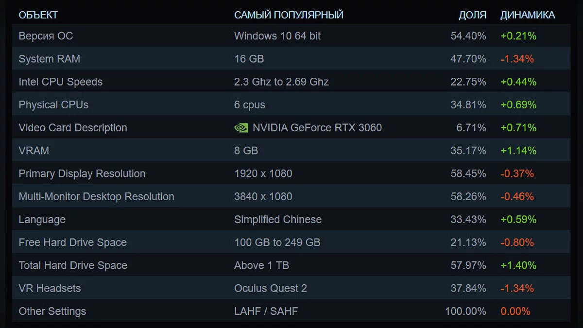 Valve опубликовала список «железа», которое было самым популярным среди пользователей Steam в марте. Количество геймеров с Windows 10 немного выросло (на 0,21%), а число игроков с Windows 11 уменьшилось (на 0,35%). Самом популярной видеокартой снова оказалась NVIDIA GeForce RTX 3060. Причём количество человек, использующих её, продолжает расти (на 0,71% за месяц).