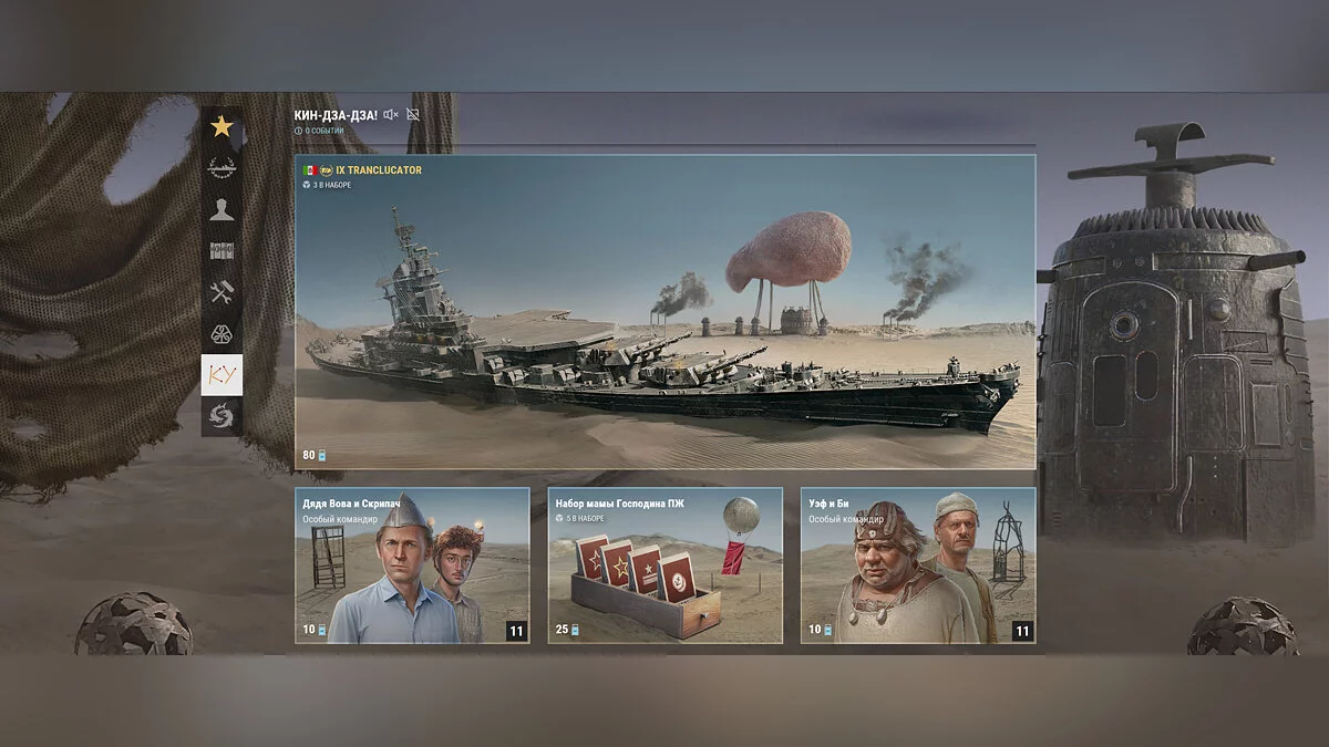 Разработчики «Мира кораблей» объявили о запуске еще одной коллаборации — на этот раз с киностудией «Мосфильм». Благодаря этому в морском онлайн-экшене появился контент из культовой картины «Кин-дза-дза!» Георгия Данелии. Событие продлится до 24 апреля.