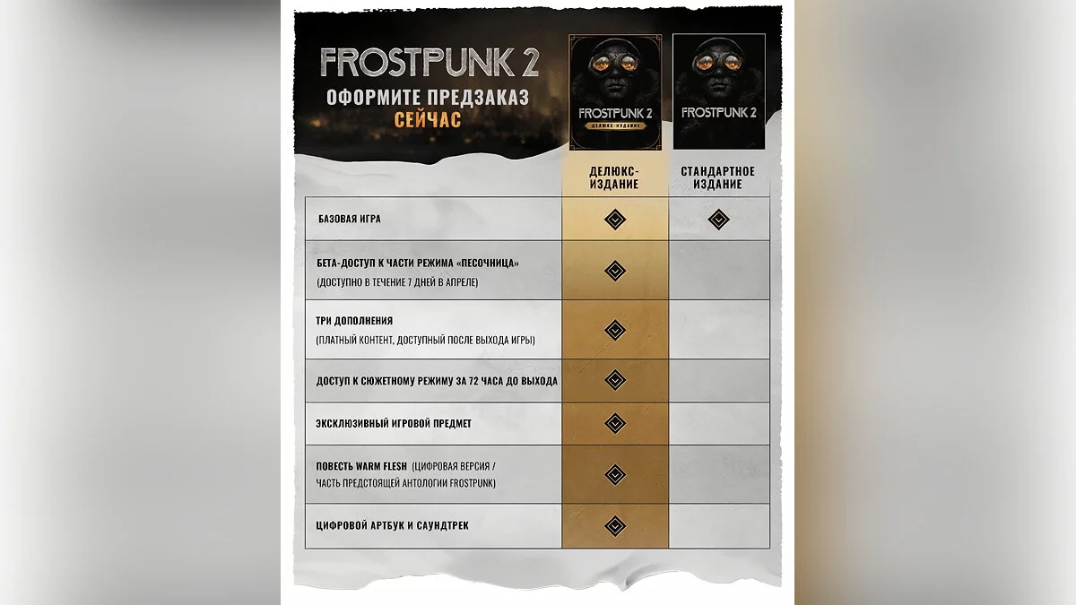 В апреле 11 bit studios проведёт на PC закрытое бета-тестирование градостроительного симулятора Frostpunk 2. Принять в нём участие смогут только те, кто предзаказал делюкс-издание игры.