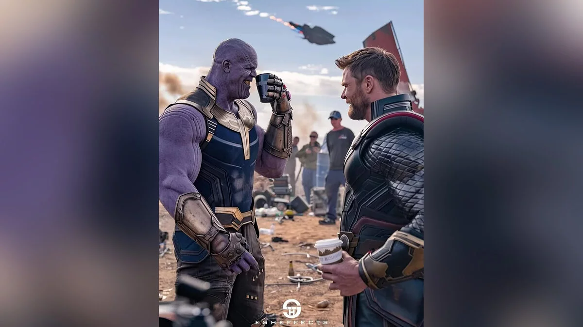 ИИ показал забавные фото со съемок «Мстителей: Финал». На одной из них Танос обнимает Железного человека