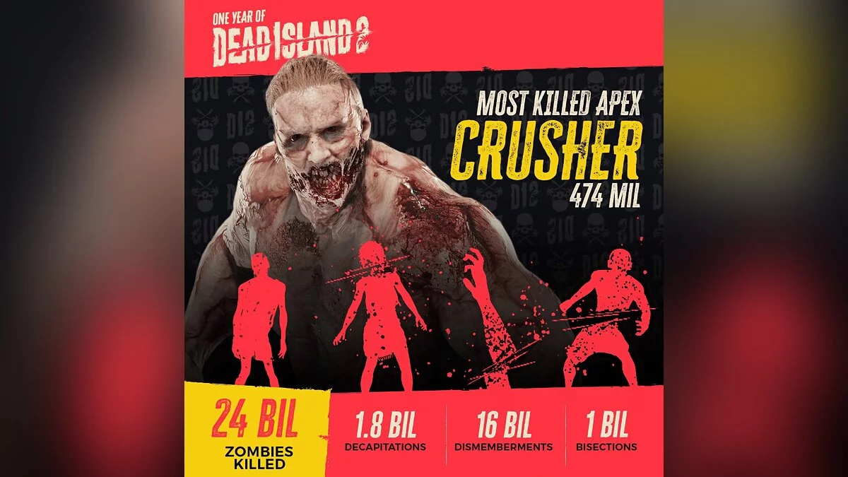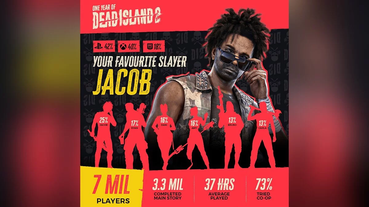 В честь годовщины Dead Island 2 разработчики сообщили, что в зомби-экшен сыграли 7 млн человек. Большинство из них — пользователи PlayStation. Количество людей, которые завершили сюжетную кампанию, составило 3,3 млн. Самым популярным персонажем оказался Джейкоб.