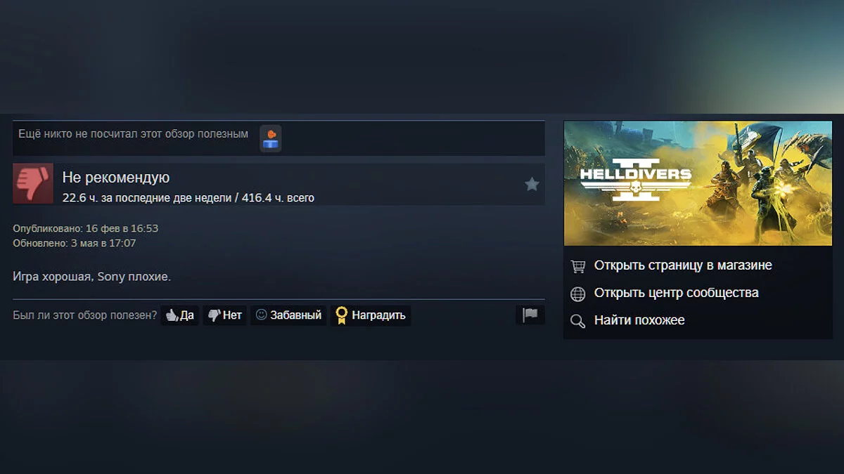 «Игра хорошая, Sony плохие»: Steam-версия Helldivers 2 утонула в негативных отзывах после требований создать аккаунт PSN