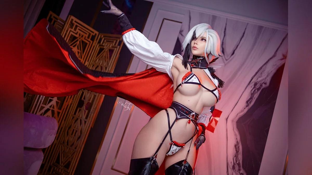 Популярная российская косплеерша с ником Oichi поделилась сетом фотографий, где предстала в образе Арлекино, новой пятизвёздочной пиро-героини из Genshin Impact. В косплее девушка решила показать собственную версию персонажа с более откровенным нарядом.