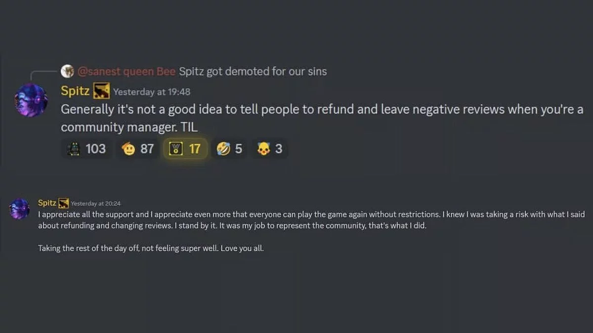 Разработчики Helldivers 2 уволили комьюнити-менеджера под ником Spitz, который призывал оставлять негативные отзывы и оформлять возвраты средств в Steam. По словам бывшего сотрудника, так он хотел помочь авторам, дав им «больше возможностей для переговоров с Sony».