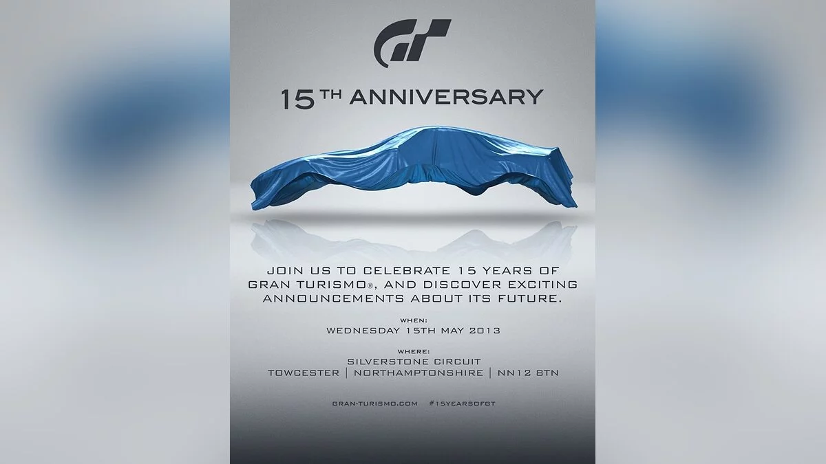 Послание на опубликованном сегодня изображении гласит следующее: «Предлагаем принять участие в праздновании 15-летия Gran Turismo и узнать новые волнующие подробности будущего серии».