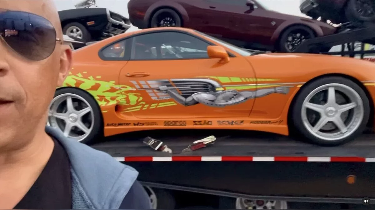 Дизель записал ролик на фоне оранжевой Toyota Supra, известной по первому «Форсажу». Актер признался, что автомобиль связан со многими воспоминаниями о франшизе.