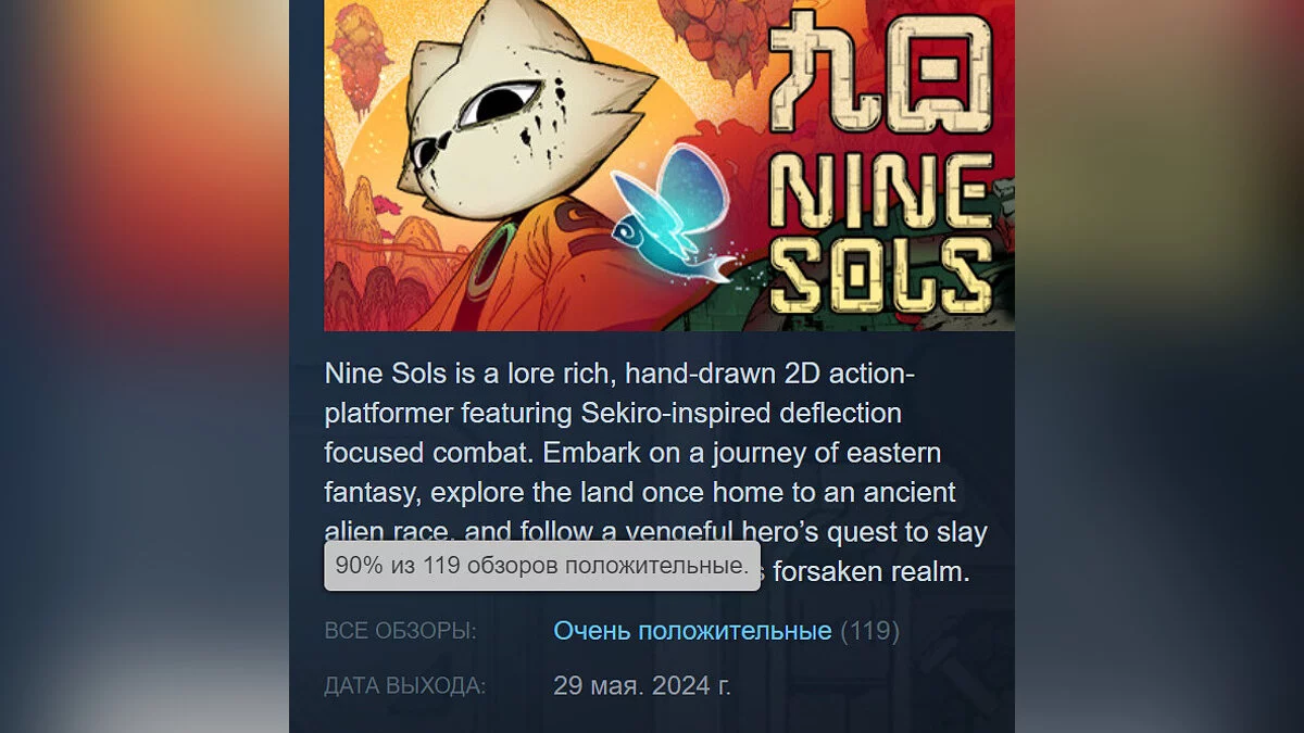 В Steam состоялся релиз Nine Sols, хардкорного 2D-экшена в сеттинге даопанка (смесь даосизма и киберпанка), вдохновлённого Hollow Knight, Dark Souls и Sekiro: Shadows Die Twice.