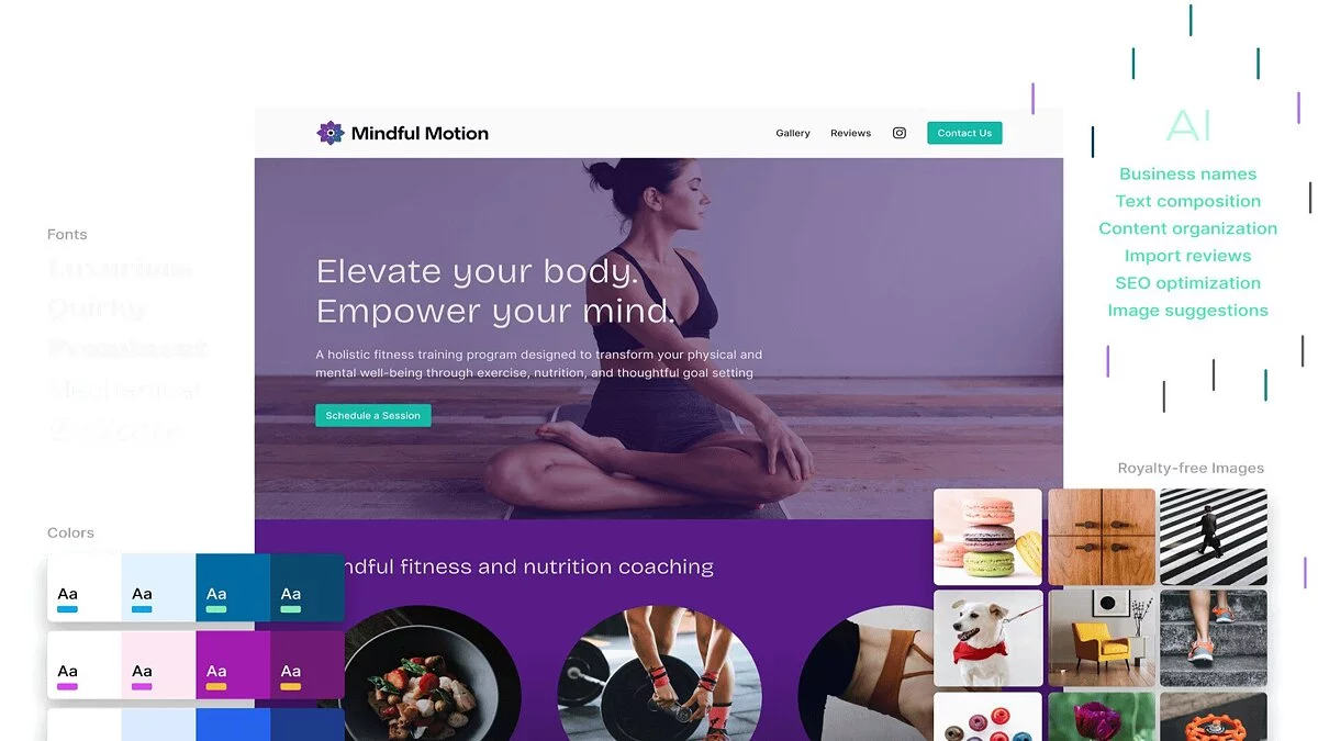 Solo использует передовые алгоритмы машинного обучения для автоматизации разработки дизайна и элементов интерфейса сайтов. Сервис значительно упрощает процесс создания веб-страниц, предлагая пользователям выбрать тему, определить цветовую схему и шрифты, а также настроить стандартные разделы, такие как информация о компании, услуги, отзывы и контакты.