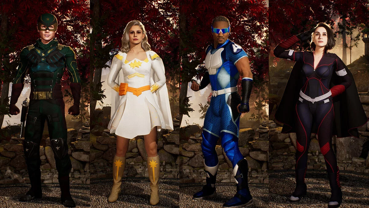 Солдатик, Старлайт, Поезд-А и Штормфронт из «Пацанов» (заменяют Миротворца, Ли Мей, Кун Лао и Соню):