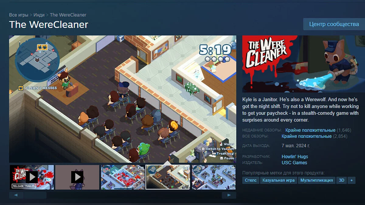 - The WereCleaner — стелс-игра про уборщика-оборотня (99% рейтинга).