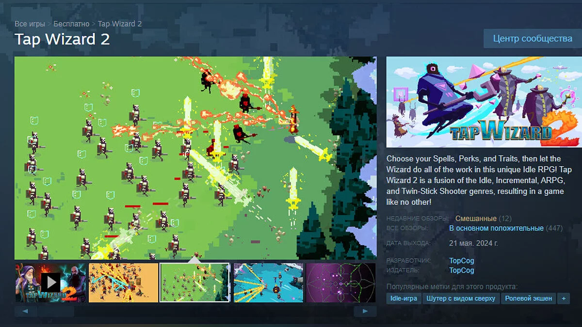 - Tap Wizard 2 — пиксельный шутер с видом сверху (76% рейтинга);