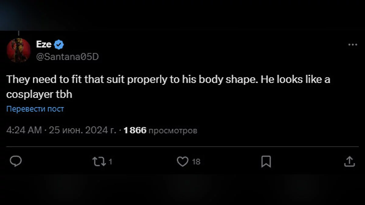 «Им нужно правильно подогнать этот костюм к форме его тела. Он похож на косплеера, если честно»