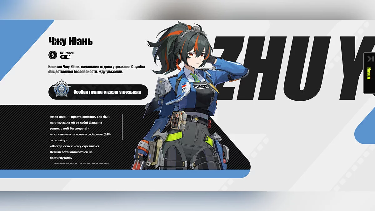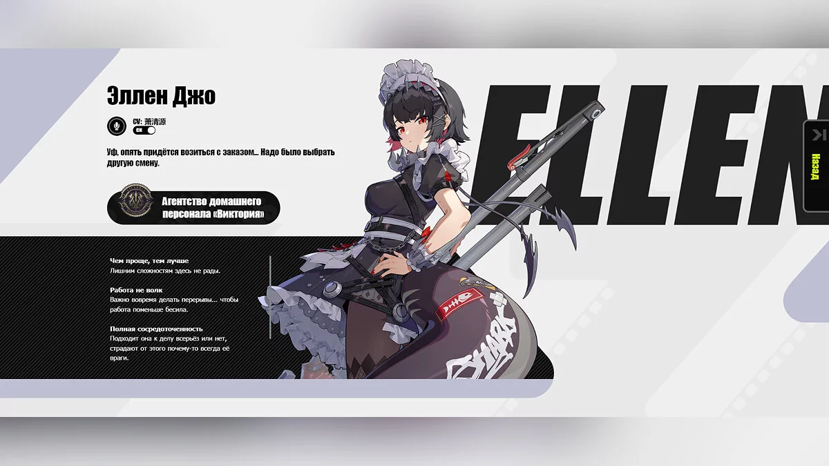 В баннер первой половины версии 1.0 попадёт Эллен Джо из Агентства домашнего персонала «Виктория», в баннер второй половины — Чжу Юань из Особой группы отдела угрозыска.