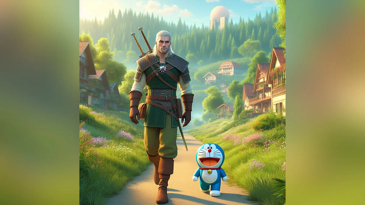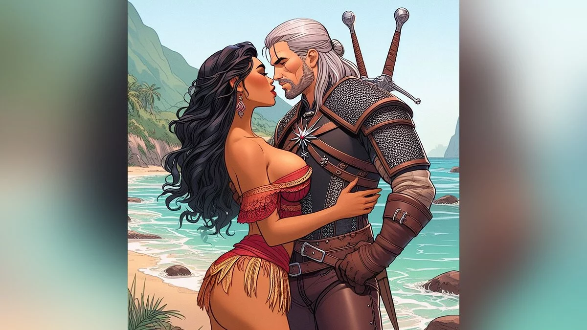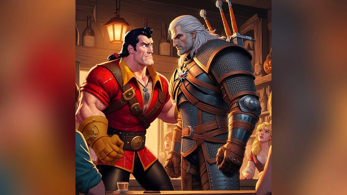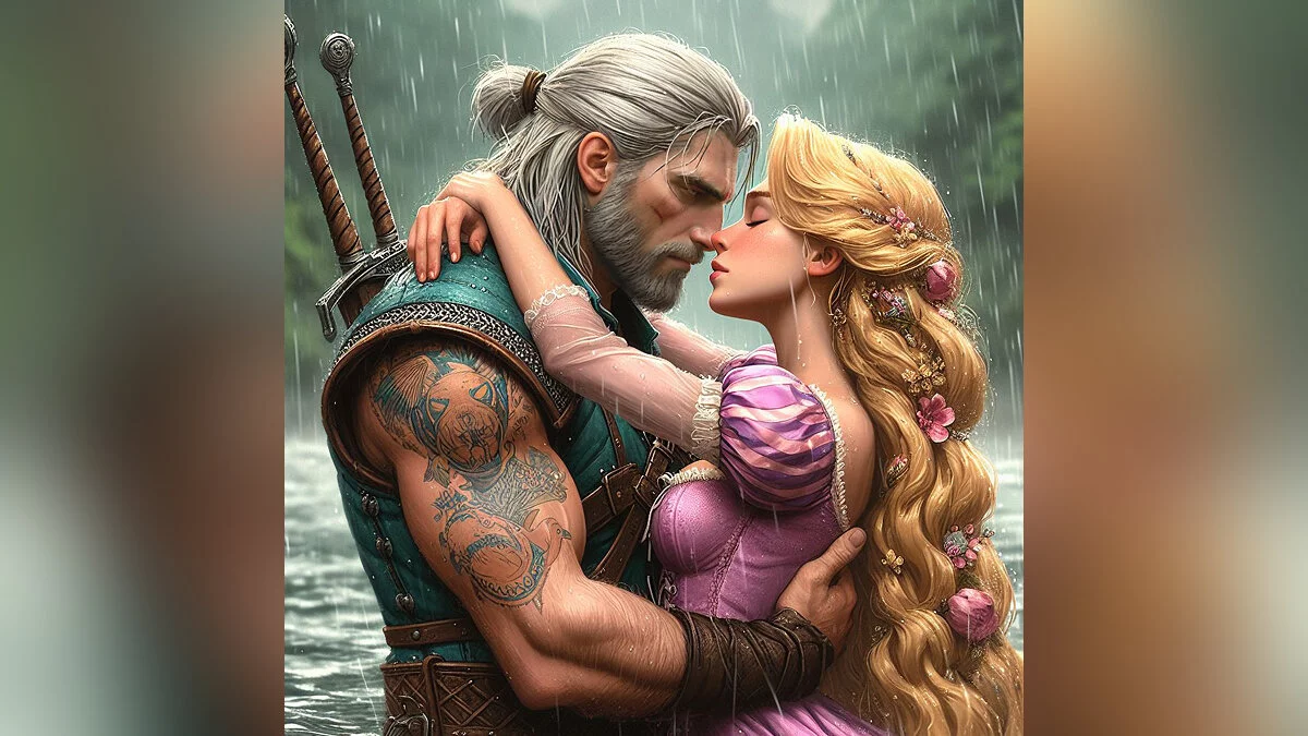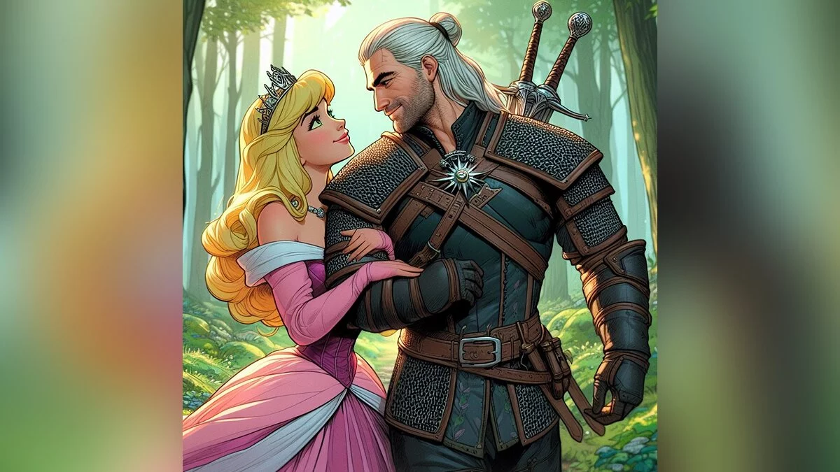 ИИ показал встречу Геральта с диснеевскими принцессами и не только