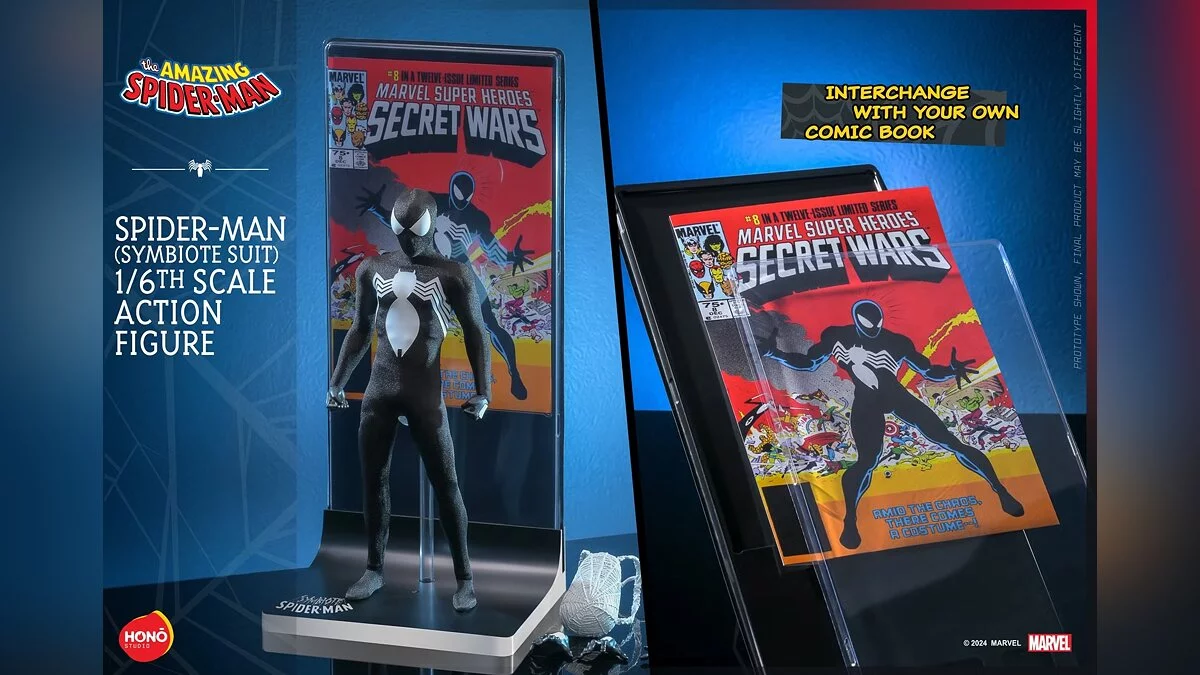 Новая экшен-фигурка будет выполнена в масштабе 1 к 6 и оснащена множеством сменных деталей, таких как руки, линзы для глаз, паутина и рюкзак. В комплекте с моделькой идет выпуск Marvel Comics Secret Wars № 8 (1984 год), который можно использовать как фон или просто читать. Черный костюм будет выполнен из ткани, а сама фигурка получит подвижное тело и конечности.