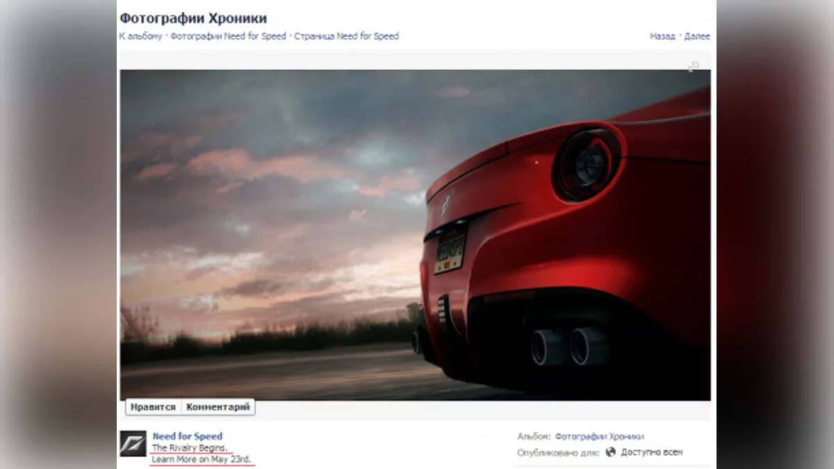На официальной Facebook-странице (признано в России экстремистской организацией) Need for Speed (2013) появилось сообщение, намекающее на завтрашний анонс следующей игры в знаменитом гоночном сериале.