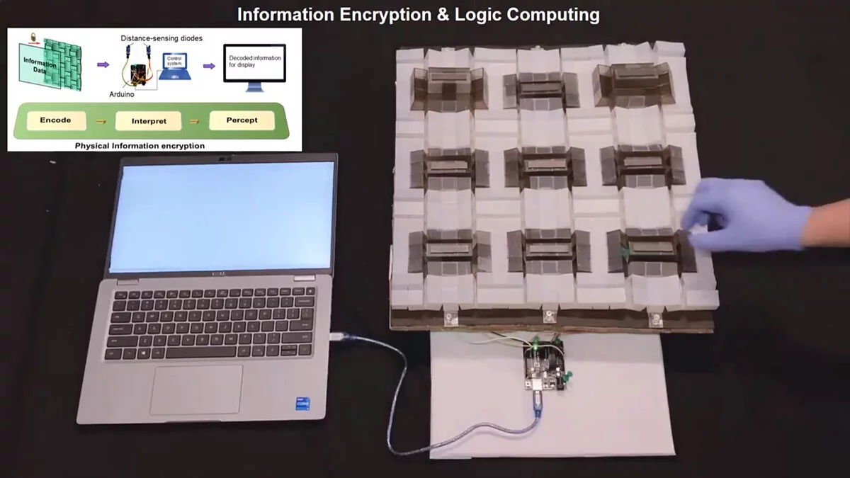 В условиях роста энергопотребления облачными хранилищами и приложениями, основанными на искусственном интеллекте, идея компьютера, работающего без электричества, приобретает особую актуальность. Прототип состоит из 64 полимерных кубиков, соединенных тонкими полосками эластичной ленты. Кубики могут перемещаться вверх или вниз, изменяя геометрию соединений и представляя данные. Эти действия позволяют фиксировать или редактировать информацию без электронных компонентов. Кубы могут быть сгруппированы в функциональные блоки, которые могут конфигурироваться в различные архитектуры и могут быть уложены в стопки до пяти ячеек.