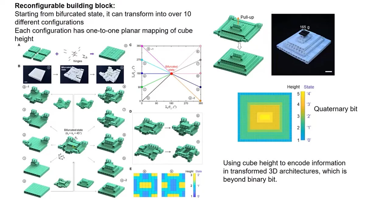 Создатели прототипа пояснили, что данный метод позволяет выйти за пределы двоичной системы. Кубы могут иметь пять или более состояний, что теоретически позволяет им отображать значения не только 0 и 1, но и 2, 3 или 4.Исследователи выражают интерес в применении своей разработки не только в вычислительной технике, но и в создании тактильных систем, отображающих информацию в трехмерном виде. Одна из возможных областей применения — создание 3D-паролей.