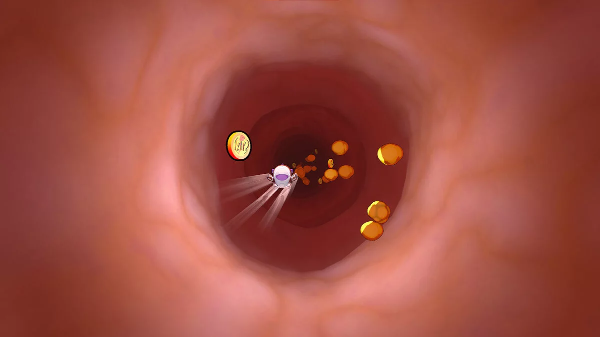 GastroRun — необычный шутер, где нужно исследовать желудочно-кишечный тракт человека и стрелять ферментами, расщепляя пищу и побеждая микробов. Страница в Steam.